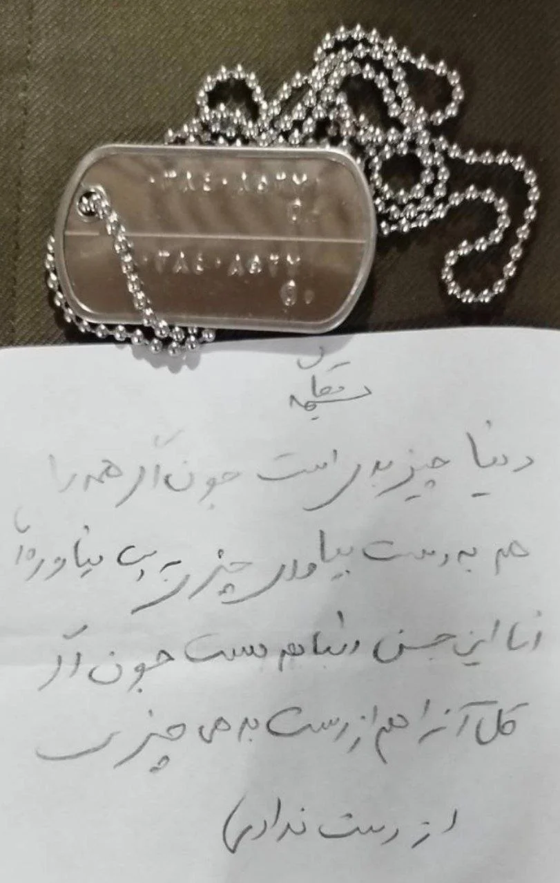 پلاک سپهبد شهید سید عبدالرحیم موسوی همراه دست نوشتهای از جنس عرفان
