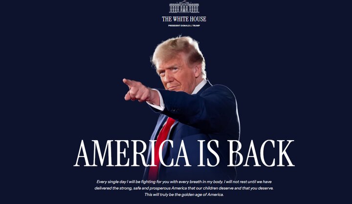 - با پایان مراسم تحلیف ریاستجمهوری دونالد ترامپ و آغاز رسمی کار او به عنوان چهلوهفتمین رئیسجمهور آمریکا، صفحه اول وبسایت رسمی کاخ سفید با عنوان «آمریکا بازگشت» و تصویری از دونالد ترامپ تغییر کرد.