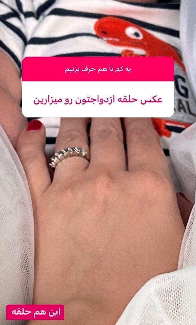 نگاهی به حلقه ازدواج ظریف و شیک دریا مرادی دشت، عروس چشم رنگی فاطمه گودرزی+عکس/ چه مادرشوهر خوش شانسی