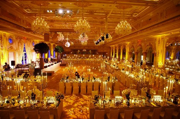 مهمانی در تالار عمارت برگزار شد که با حدود ۱۰ هزار گل تزئین شده بود. این گل ها با کامیون از نیویورک به فلوریدا منتقل شده بودند.