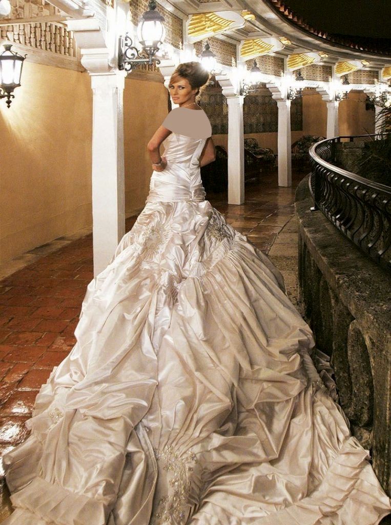 این لباس ۱۴۸ هزار دلاری به قدری سنگین بود که ملانیا با آن به سختی راه می رفت اما تصویر او را روی جلد مجله ی ووگ برد.