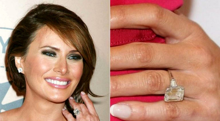 زیورآلات ملانیا در روز عروسی اش یک گردنبند الماس، ۳ دستبند الماس و یک انگشت الماس ۱/۵ میلیون دلاری بود که ترامپ قبلاً به عنوان انگشتر نامزدی به او هدیه بود.