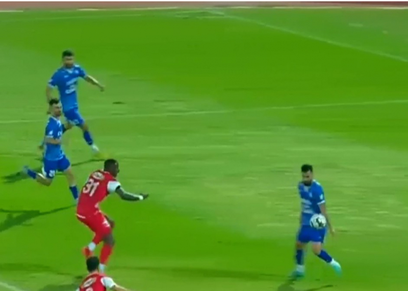 در آخرین دقایق نیمه اول بازی استقلال خوزستان و پرسپولیس یک صحنه مشکوک داخل محوطه جریمه رقم خورد
