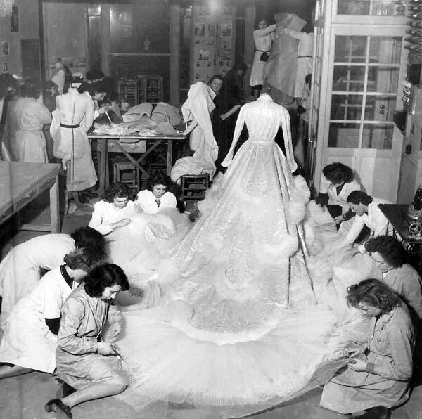 به گزارش هفت صبح و به نقل از خبرآنلاین ، در اوایل اسفند ۱۳۲۹، یک هفته پس از ازدواج شاه و ثریا مجله اطلاعات هفتگی (تاریخ ۴ اسفند ۱۳۲۹) ضمن انتشار عکسهایی از هدایایی که دولتهای مختلف به مناسبت این مراسم به شاه و ملکه اهدا کرده بودند، تصویری را نیز از پیراهن عروسی ثریا منتشر کرد. این عکس مربوط به موقعی بود که پیراهن عروس در مزون «کریستین دیور» پاریس در حال تهیه بود و چند نفر داشتند روی دامن آن را پولک و مرواریددوزی میکردند.