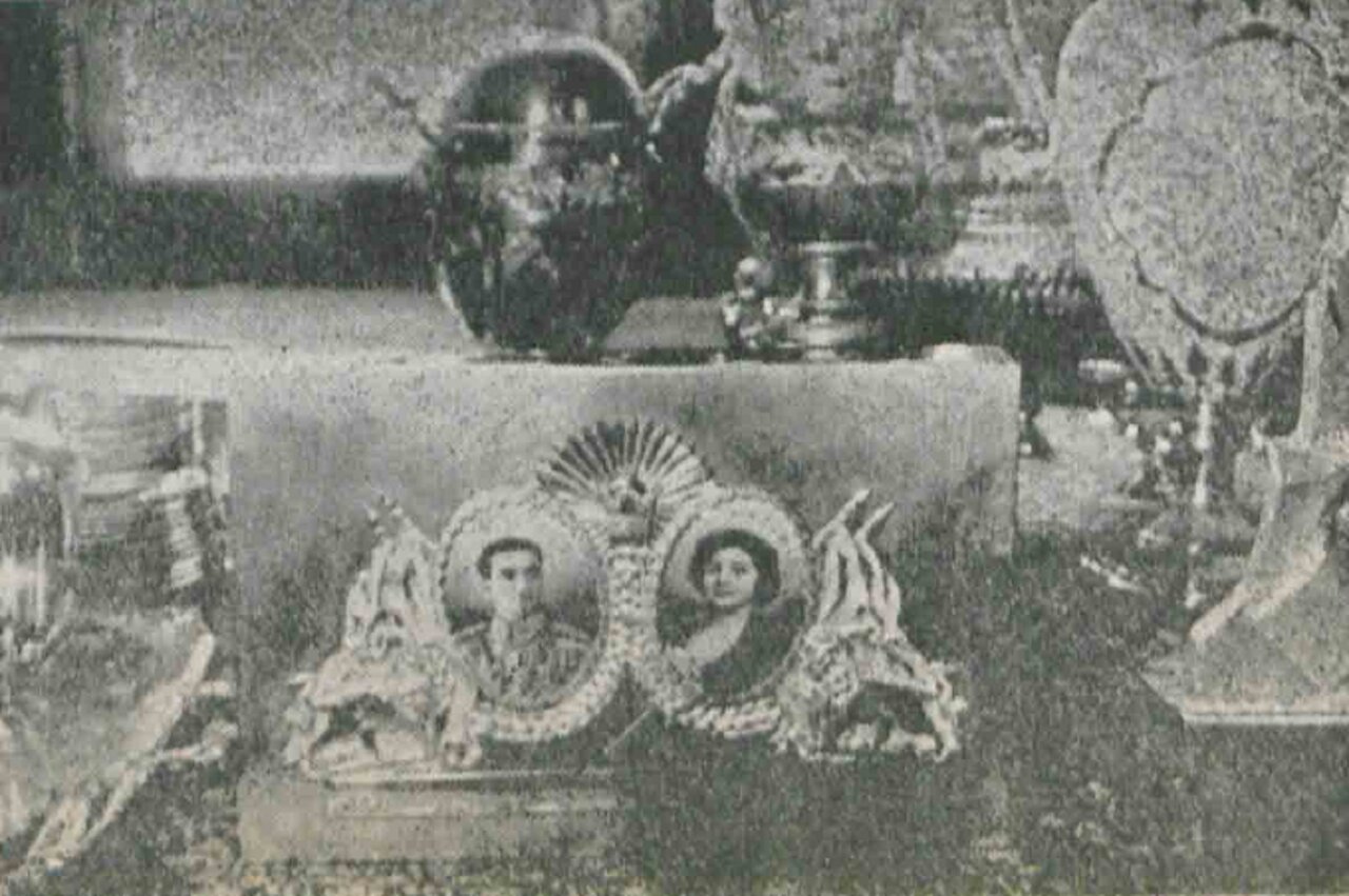 و دور آن با طلا و جواهر قابی ساختهاند. در وسط دو عکس، در بالای قاب تاج سلطنتی نصب شده